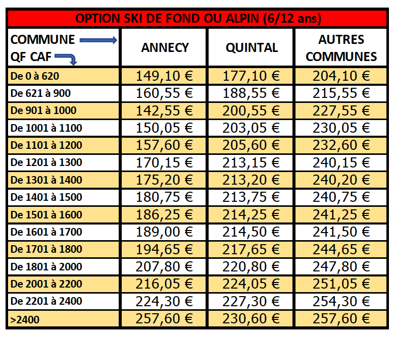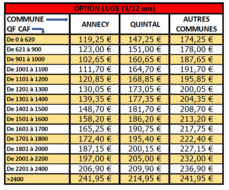 - Pour les 6/12 ans : option luge / skie de fond / ski alpin?